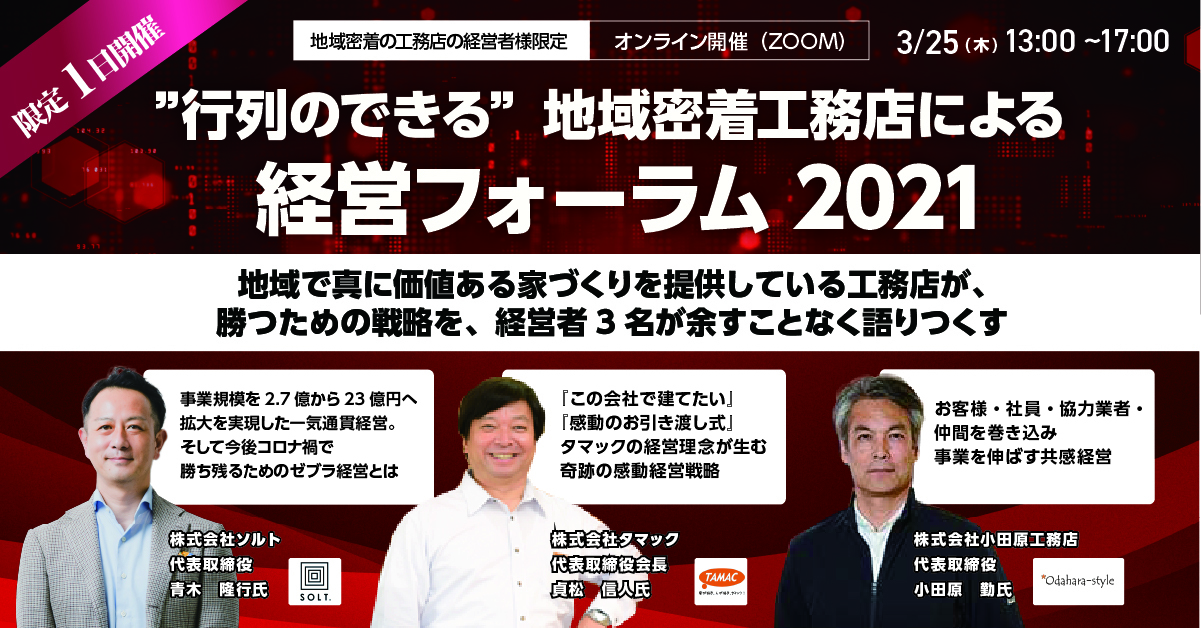 そのような中においても、地域で顧客に寄り添い価値のある家を提供されている工務店の方々向けに、本フォーラムを企画しました。