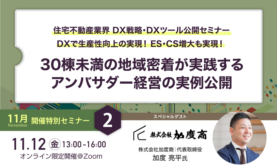 中小企業にこそDX化が重要であり、どのように成果に繋げることができるか、具体的なDXツールの紹介だけでなく、住宅経営者の皆様にも登壇頂き、現場のリアルを語っていただきます。