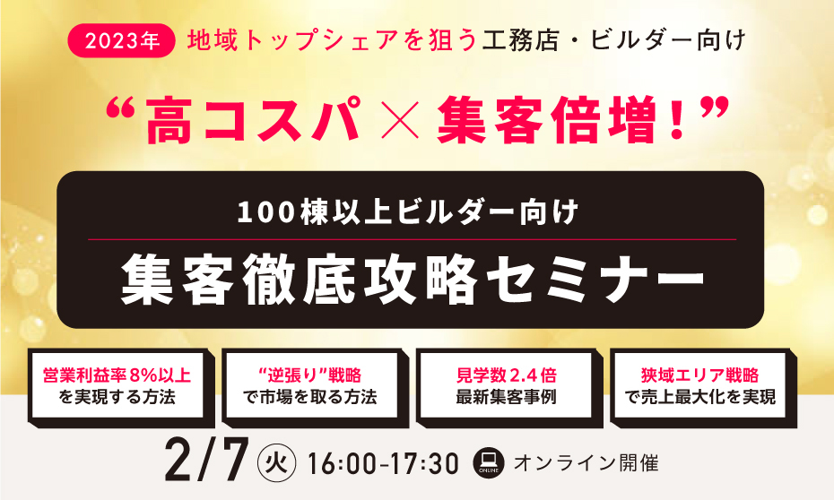高コスパ×集客倍増!100棟以上ビルダー・工務店向け集客徹底攻略セミナー
